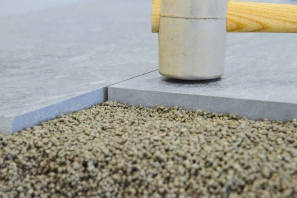 Läggningsbruk under gatsten samt plattor av natursten, betong och klinker. För inom- och utomhusbruk. Till golv/mark.