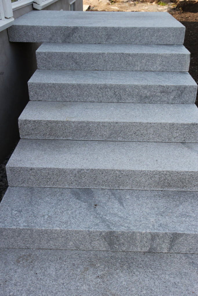 Ett noggrant utfört underarbete är avgörande för att undvika sättningar och säkerställa att trappan förblir stabil och jämn över tid. Granitens tyngd bidrar till en naturligt stabil konstruktion med minimal risk för mekaniska skador.